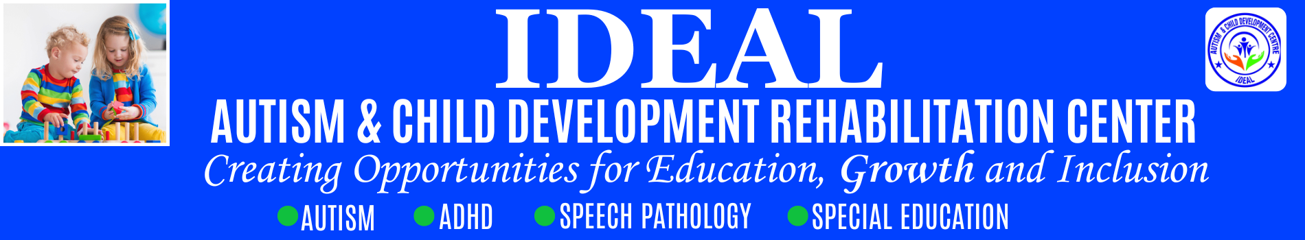 IDEAL Autism & Child Development Rehabilitation Centre is a dedicated early intervention hub committed to supporting children with Autism, ADHD, developmental delays, learning challenges, behavioural concerns, and speech-language difficulties. Our multidisciplinary team works closely with each child, providing personalised and evidence-based therapy programs tailored to their unique developmental needs. We believe that every child learns differently, grows differently, and expresses differently — and our approach respects and celebrates these differences. Through structured learning, play-based therapy, sensory integration, behaviour support, and family guidance, we help children build strong communication, social, emotional, motor, and academic skills. At IDEAL, we strongly involve parents in the journey, empowering families with knowledge, guidance, and confidence to support their child’s progress at home. Our goal is to create a warm, safe, and nurturing environment where children feel understood, valued, and supported every single day.